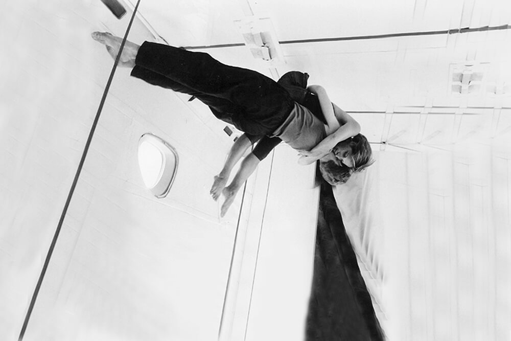 photo credit kitsou dubois and bertrand lombard experimenting onboard the CNES zero-gravity aircraft caravelle in 1990 - © Ki Productions